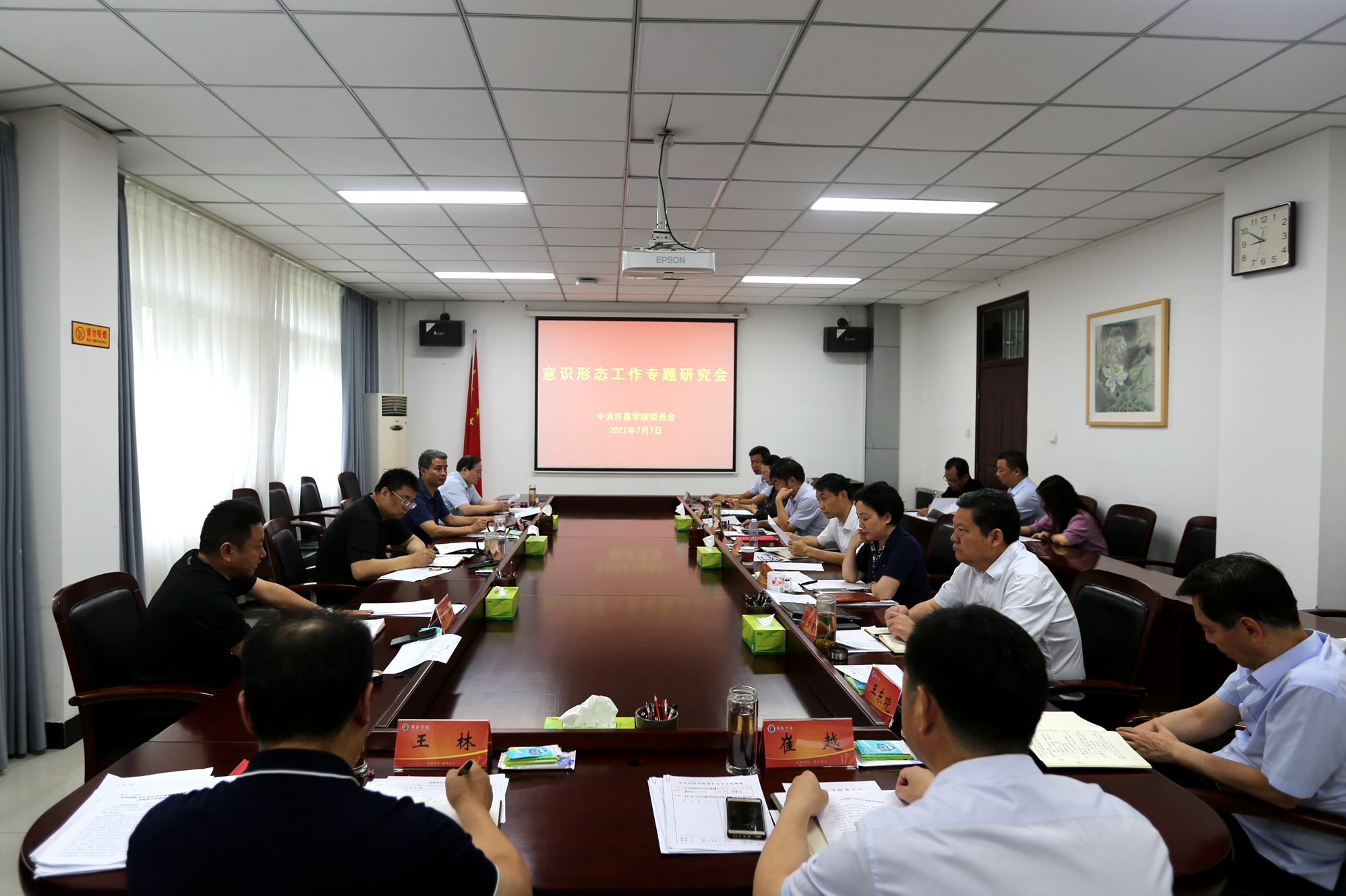 会议传达了上级意识形态有关文件精神、许昌市精神文明建设有关会议精神;听取了学校上半年舆情工作情况报告、统战部专项工作开展情况和上半年思想政治理论课建设情况;审议通过了我校修订的意识形态实施细则和省级文明校园(标兵)创建工作方案。(摄影:岳凯声)