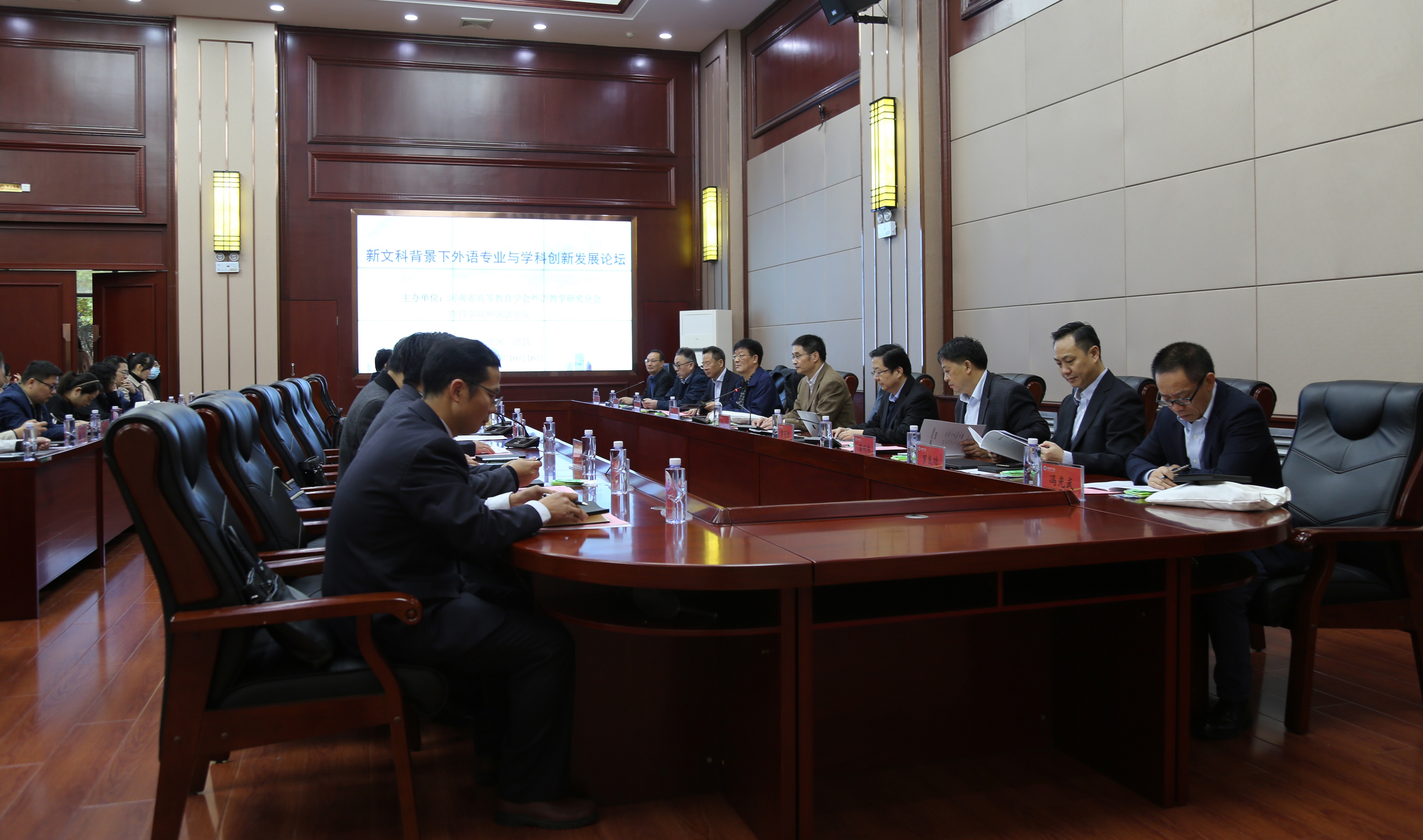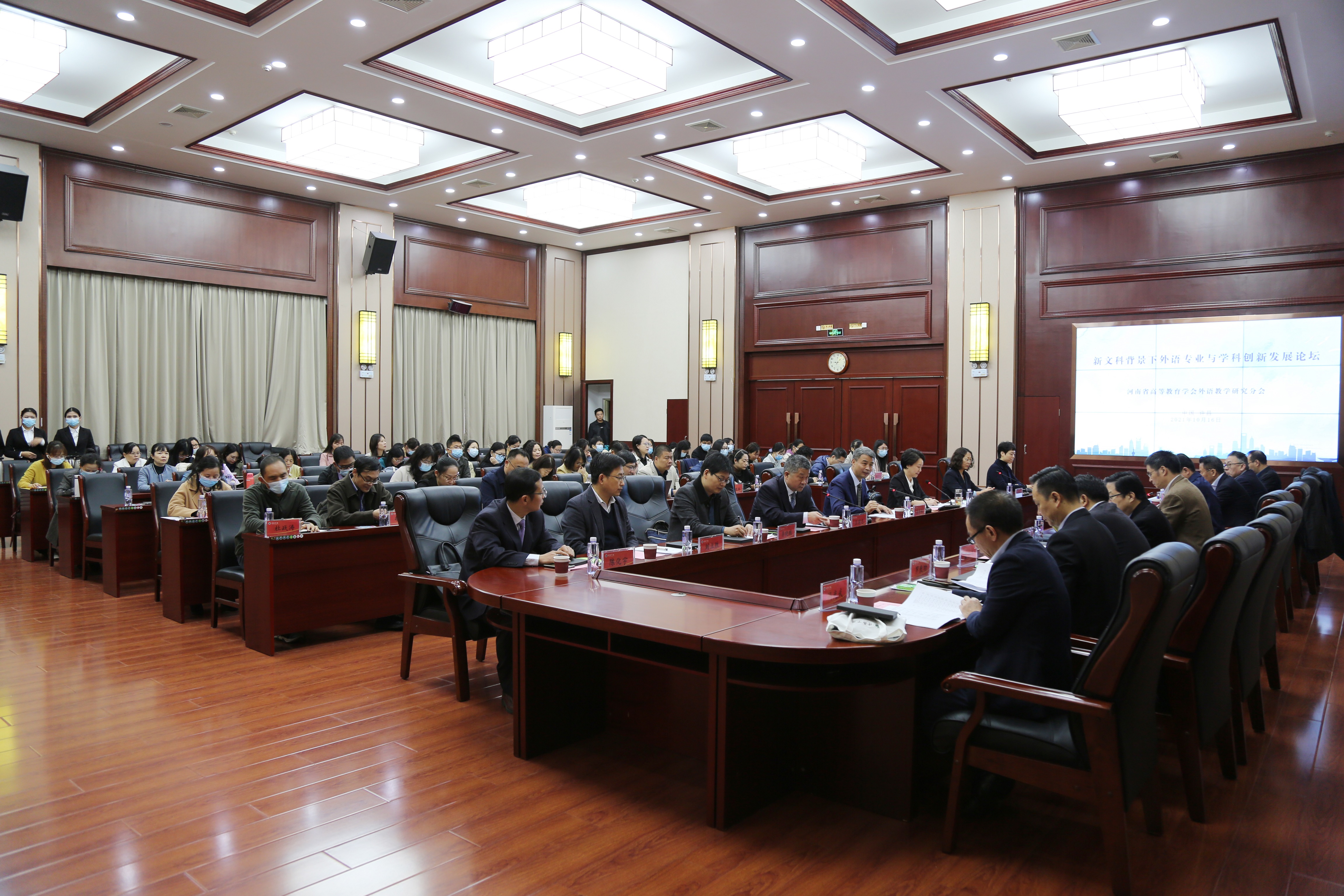 10月16日,我校承办的“新文科背景下外语专业与学科创新发展论坛”在创新创业中心一楼学术会议中心举行。浙江外国语学院校长洪岗教授,中国人民大学首都发展与战略研究院副院长郭英剑教授,北京航空航天大学外国语学院院长梁茂成教授,北京语言大学国际语言服务研究院院长王立非教授,北京师范大学外国语言文学学院院长苗兴伟教授,华中师范大学外国语学院院长罗良功教授,山东财经大学外国语学院院长李毅教授,广东外语外贸大学英语语言文化学院冯光武教授,南开大学外国语学院张文忠教授,许昌学院院长岳修峰教授、副院长黄怡俐教授出席会议,外国语学院全体教师参加了此次论坛。