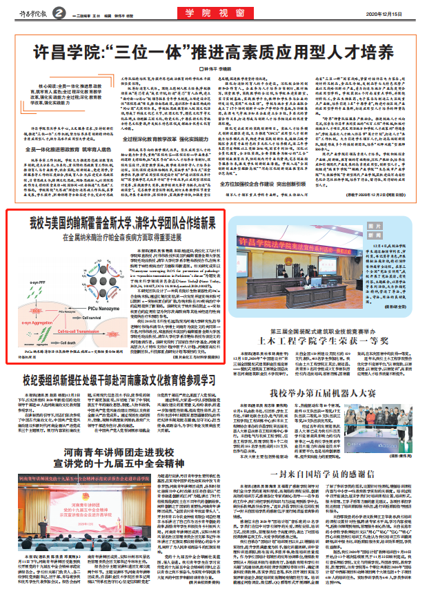 版面类一等奖:《许昌学院报》第472期第02-03版