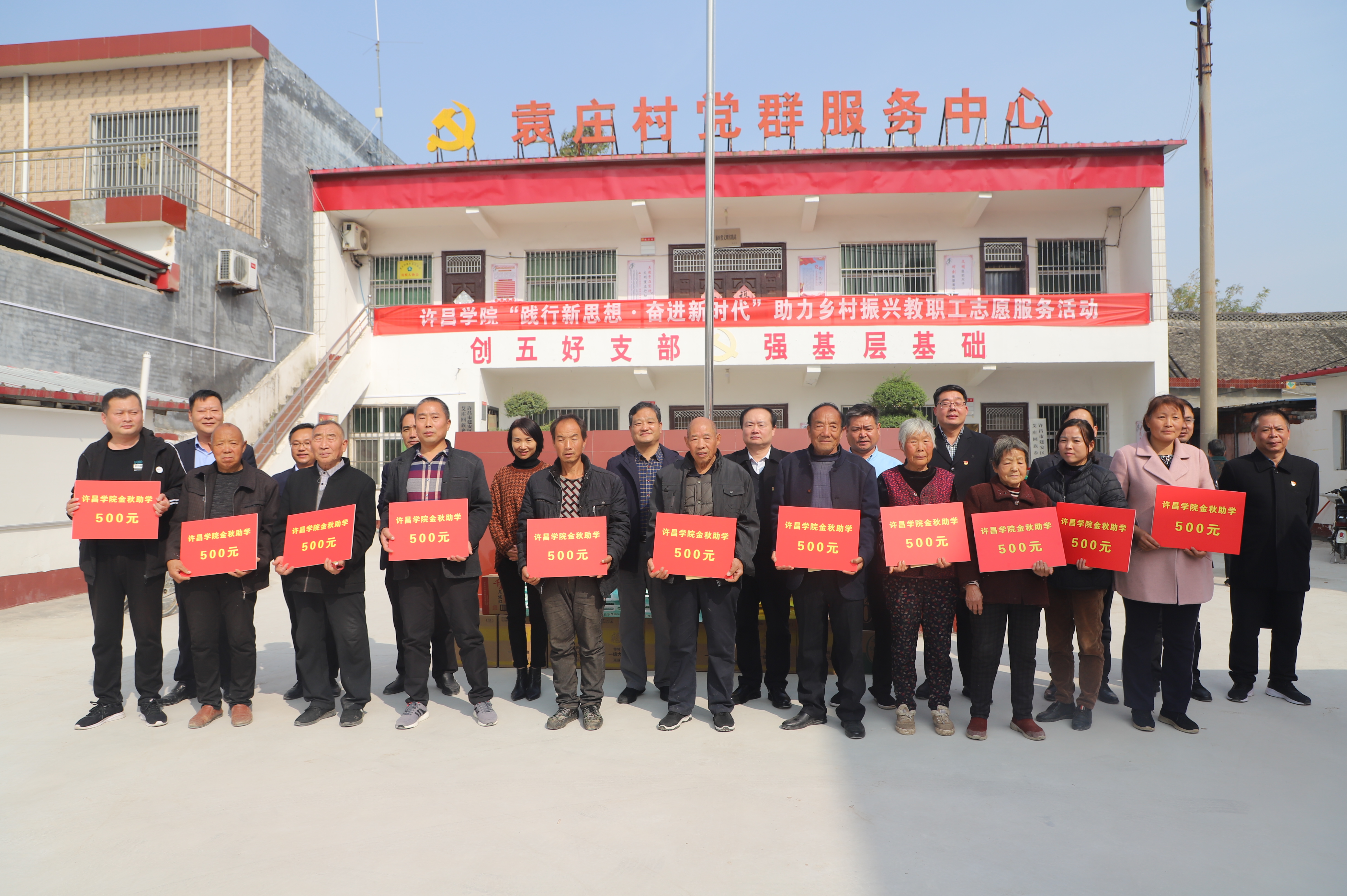 仪式上,郭涛副书记代表学校向袁庄村捐赠助力乡村振兴项目资金四万元和价值五千元的爱心物资,向袁庄村今年考取大学的14个困难学生家庭表示祝贺并发放了慰问金。