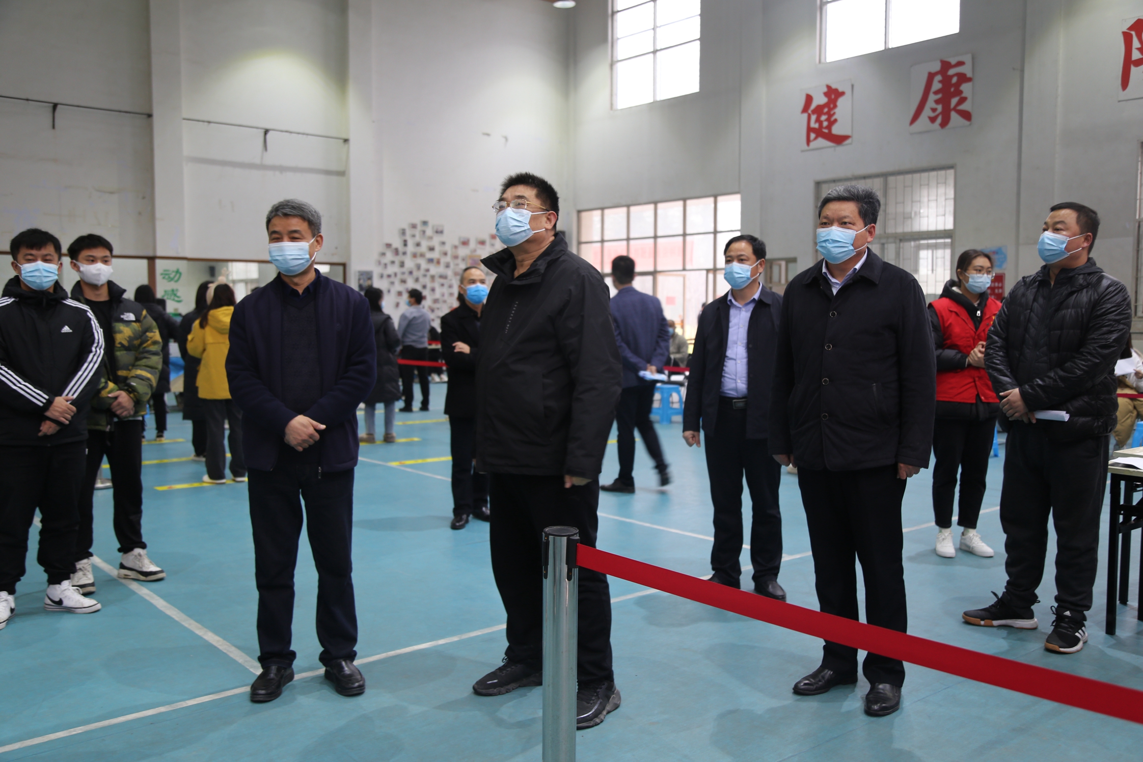12月10日上午,我校新冠疫苗加强针接种工作在学校健美操馆正式启动。校党委书记闫纪建、院长岳修峰,副院长崔斌、高金星在相关职能部门负责人陪同下,到接种点现场检查指导疫苗接种工作,看望并慰问接种疫苗的师生和工作人员。