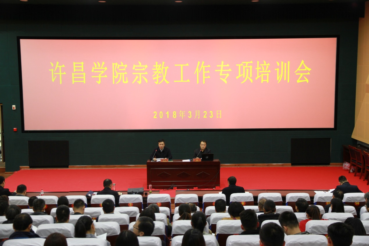 为进一步加强马克思主义宗教观教育,用习近平新时代中国特色社会主义思想武装头脑、指导实践、推动工作,3月23日下午,我校在创新创业学院二楼双创信息中心开展宗教工作专题培训。我校统一战线工作领导小组成员单位主要负责人、党总支书记(含统战委员)、党总支副书记、团总支书记、团总支副书记、政治辅导员、思政课教师200余人参加培训会。会议由学生工作部部长张鹏辉主持。