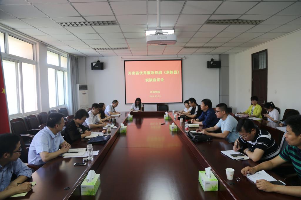 前不久,大型现代豫剧、河南省优秀廉政剧目《燕振昌》在我校演出,该剧以独特的视角歌颂了一名共产党员的责任和担当,向人们弘扬了一心为民的正能量。校领导和我校全体科级以上干部、师生党员代表700余人共同观看了演出,反响热烈。在这次座谈会上,大家发言踊跃。马克思主义学院副院长张凤云说,她被燕振昌同志认为群众利益高于一切、生命不息、奋斗不止的奉献精神所打动,燕振昌在村党组织领导岗位上坚守了44年,44年中他廉洁奉公、勤政为民,带领群众艰苦创业,修路办厂、兴学重教,把一个昔日的贫困村建成了长葛第一个亿元村而闻名乡里,为他在平凡的岗位上做出的不平凡业绩所震撼。