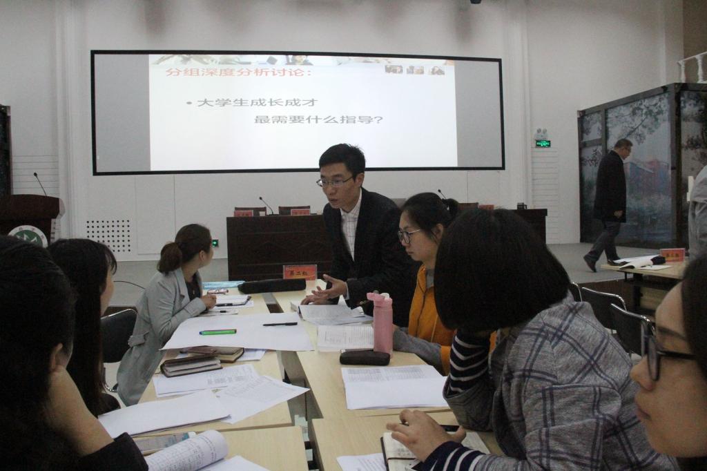 图为首期辅导员工作坊期间辅导员老师学习交流情况