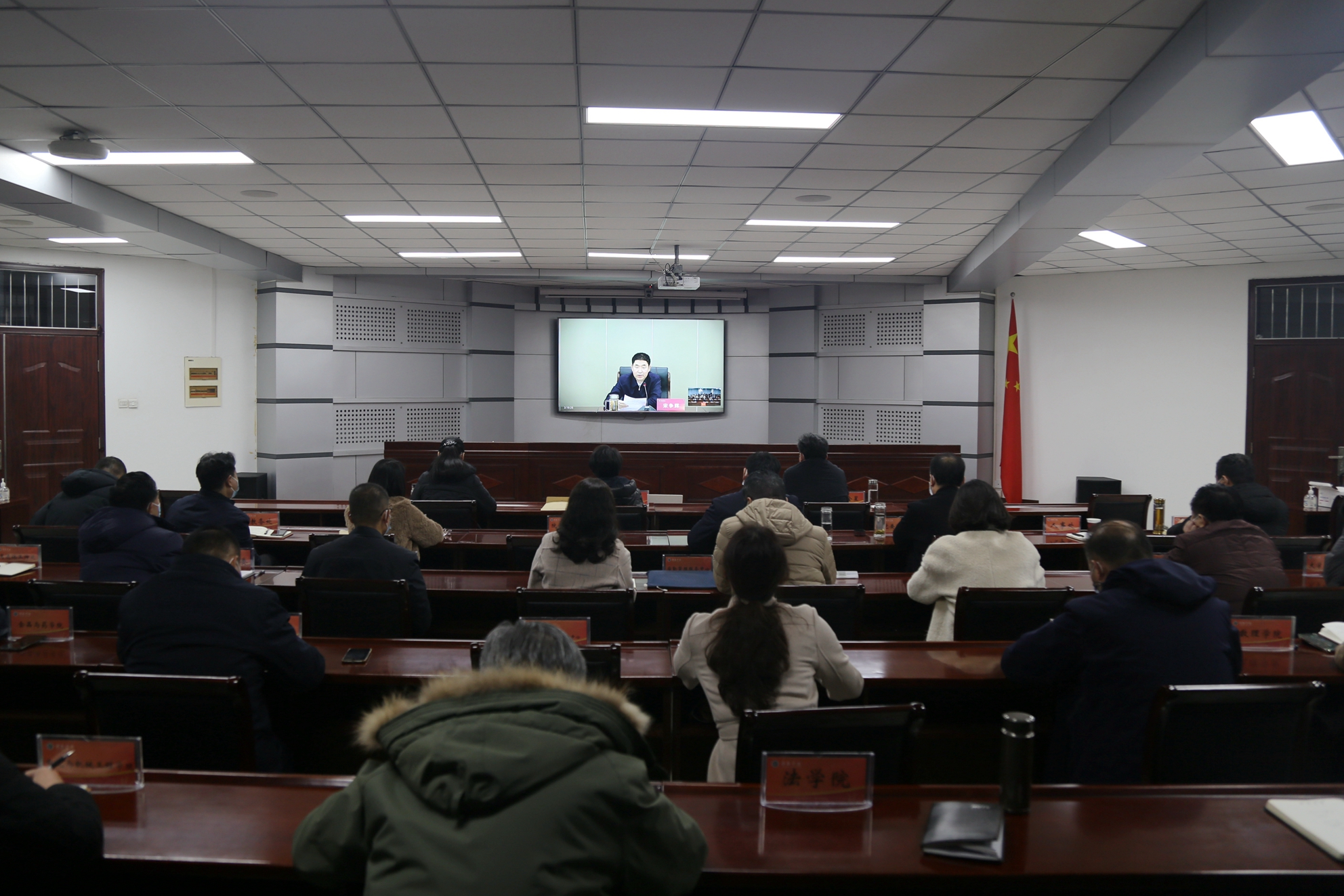 1月4日上午,全省教育系统疫情防控工作视频调度会在郑州召开。我校在办公楼第三会议室设立分会场集中收看大会视频直播。副院长黄怡俐、高金星、潘春彩出席会议。学校疫情防控各工作专班负责人,各基层党委、直属党支部书记参加视频会议。