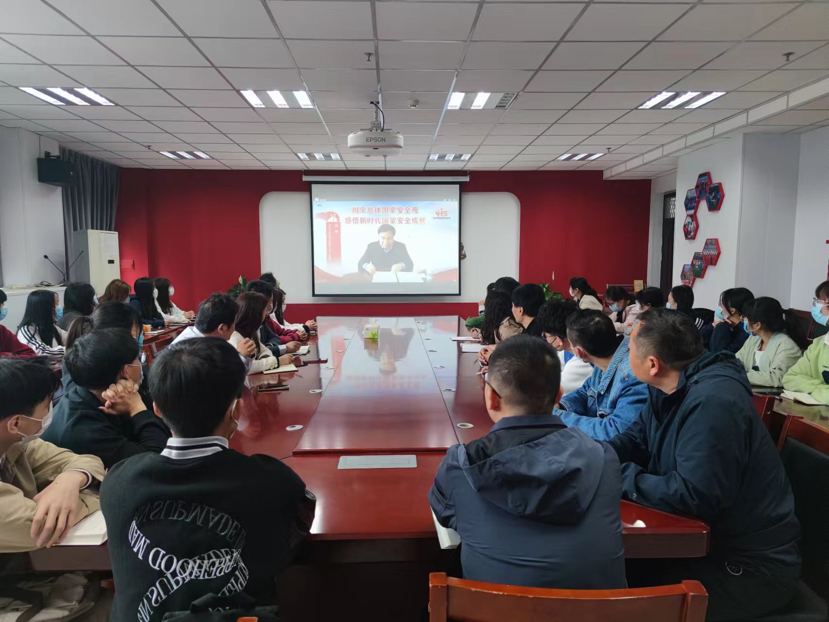 4月15日上午,由省委教育工委、省教育厅主办,洛阳师范学院、洛阳市教育局承办的2022年国家安全教育日启动仪式暨全省大中小学思政课集体备课展示活动如期举行。我校分别在办公楼第三会议室和马克思主义学院会议室设立分会场收看视频直播。院长岳修峰、党委副书记孙海、副院长潘春彩,相关职能部门负责人、各学院(书院)党委书记、思政课教师和学生代表参加分会场直播活动。