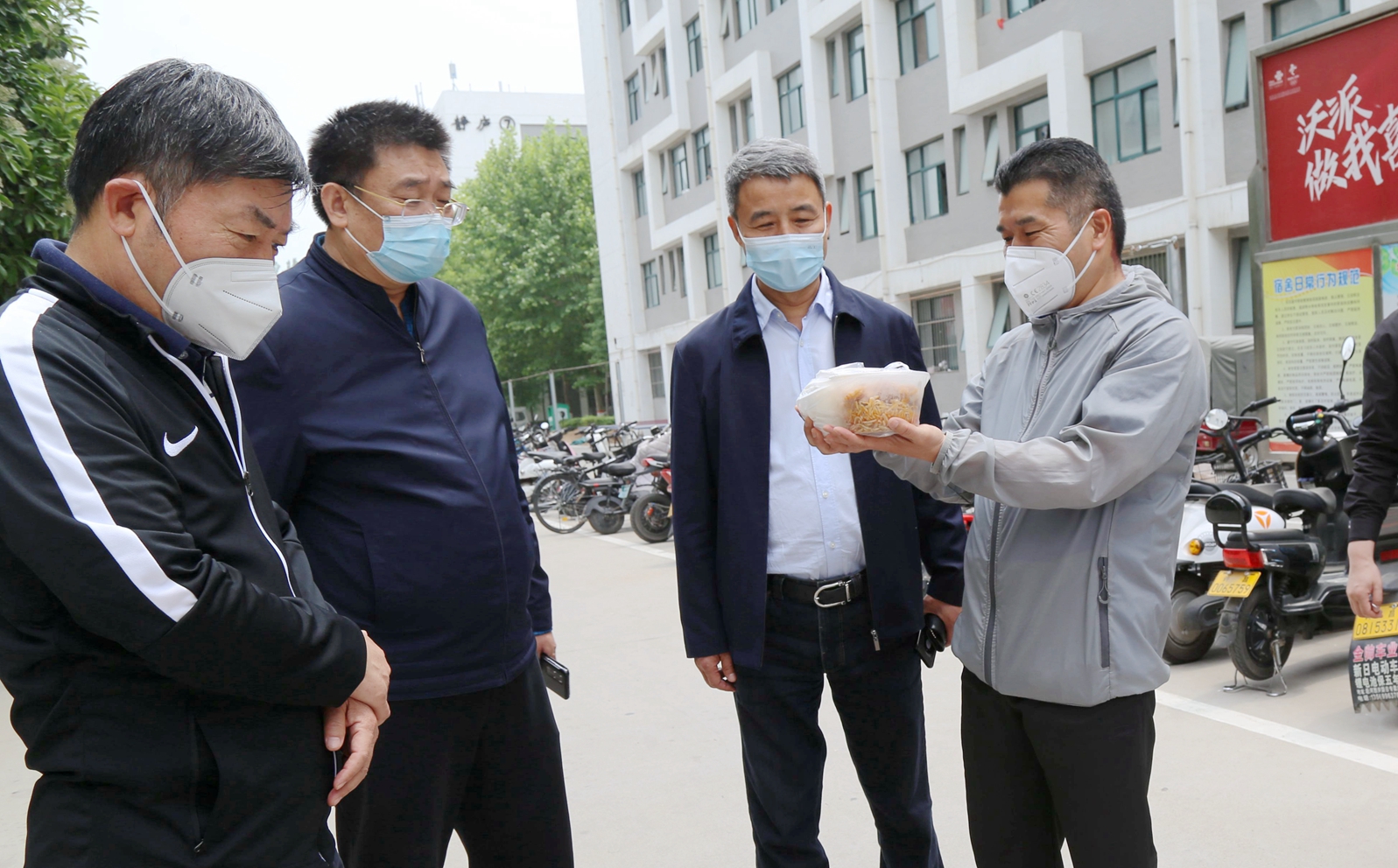 当天中午,闫纪建、岳修峰来到学生公寓,现场检查学生餐包饭菜质量、配送分发过程,关心慰问志愿者和工作人员,并隔窗与宿舍学生对话互动。校领导要求,要把学生三餐饮食放在首位,积极调配校内外资源,全力保障学生伙食供应及时高效、食品安全卫生、营养搭配合理,确保同学们吃饱饭、吃好饭。志愿者、工作人员要做好个人防护,规范操作,领导干部、辅导员要加强与学生沟通,主动回应学生关切,切实做好校园静态管理下的学生思想工作。(摄影:杨哲)