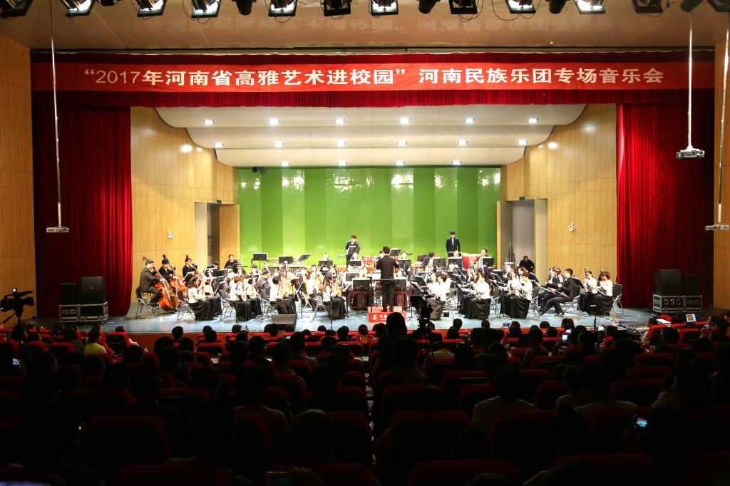 10月26日晚,河南省2017“高雅艺术进校园”之河南民族乐团走进许昌学院专场音乐会在我校音乐厅举行音乐会由河南省文化厅、河南省财政厅、河南省教育厅主办,河南歌舞演艺集团、河南民族乐团承办。我校党委副书记孙海出席音乐会并致辞,党委宣传部、音乐舞蹈学院相关负责人及师生代表近400人到场观看。