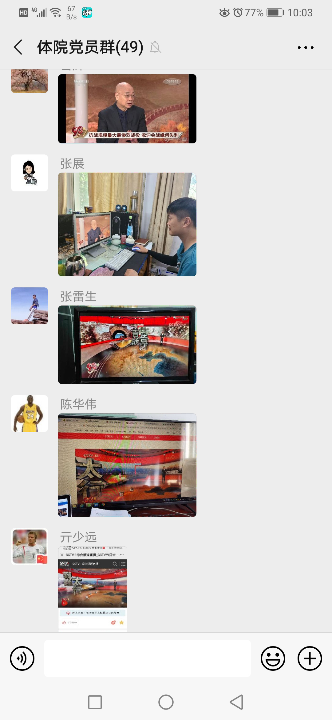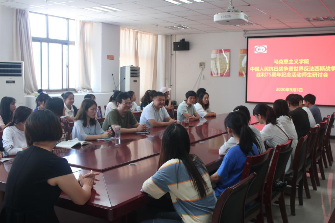 体育学院教工第四党支部书记刘旭东说:经过14年不屈不挠的英勇斗争,中国人民赢得了近代以来中国反抗外敌入侵的第一次完全胜利。这一伟大胜利,确立了中国在世界上的大国地位,使中国人民赢得了世界爱好和平人民的尊重。