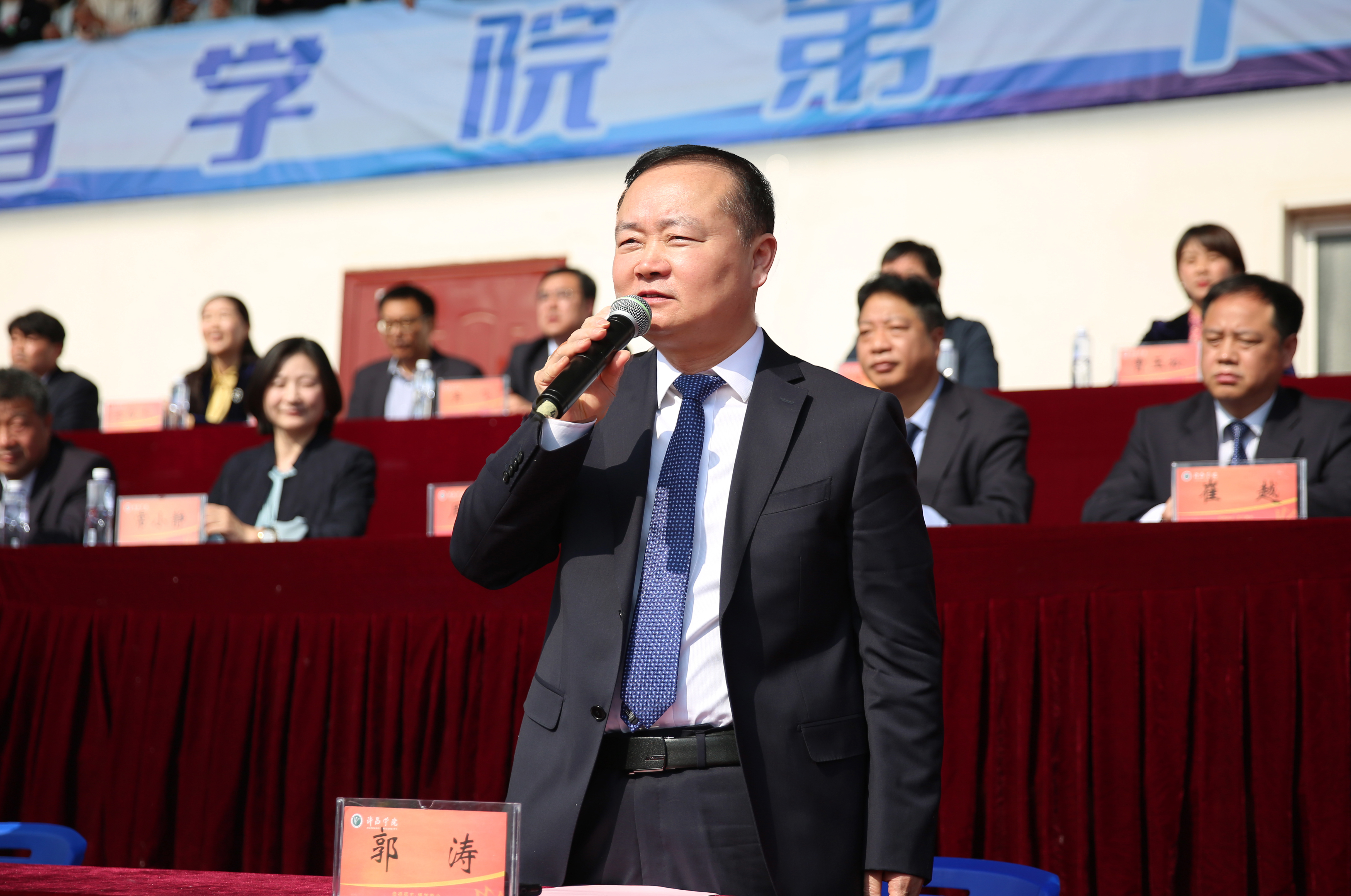 开幕式上,郭涛宣布许昌学院第十八届田径运动会开幕。