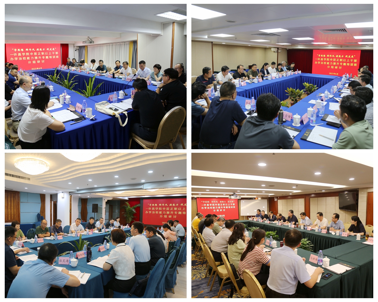 培训期间,全体学员分为4个小组进行了分组讨论,大家本着对学校事业发展高度负责的责任感和使命感,结合自身工作实际,围绕专家报告、主题发言以及如何有效破解学校发展瓶颈问题进行了深入思考和研讨,从不同角度谈体会、提建议、话收获。各组组长分别就小组研讨情况作了总结汇报。