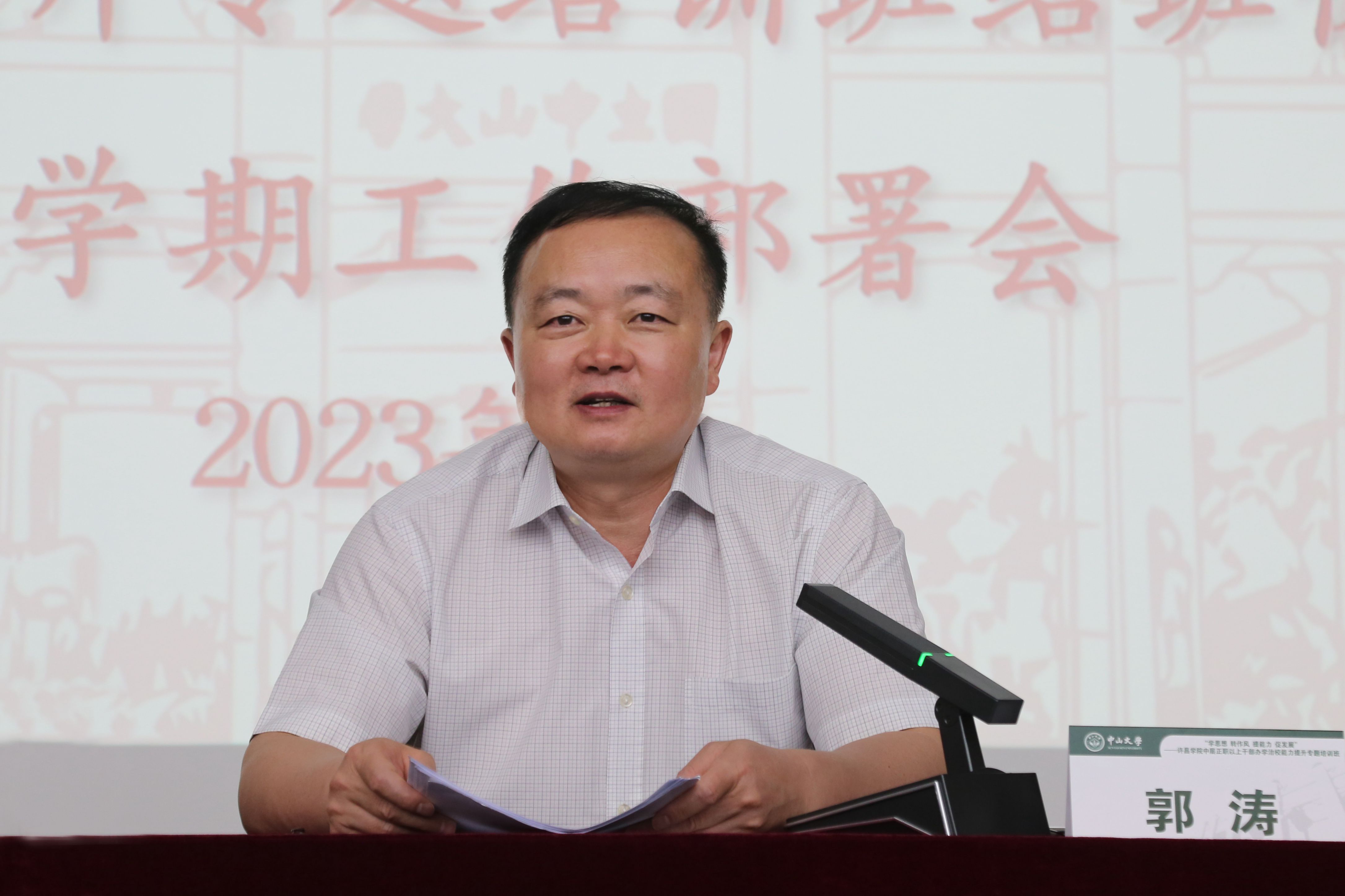 8月25日下午,我校在中山大学举行2023年中层正职以上干部办学治校能力提升专题培训班结班仪式暨新学期工作部署会。校党委书记郭涛、院长郑直出席会议并讲话。会议由校党委副书记、工会主席梁予昉主持。全校正处级以上领导干部参加会议。