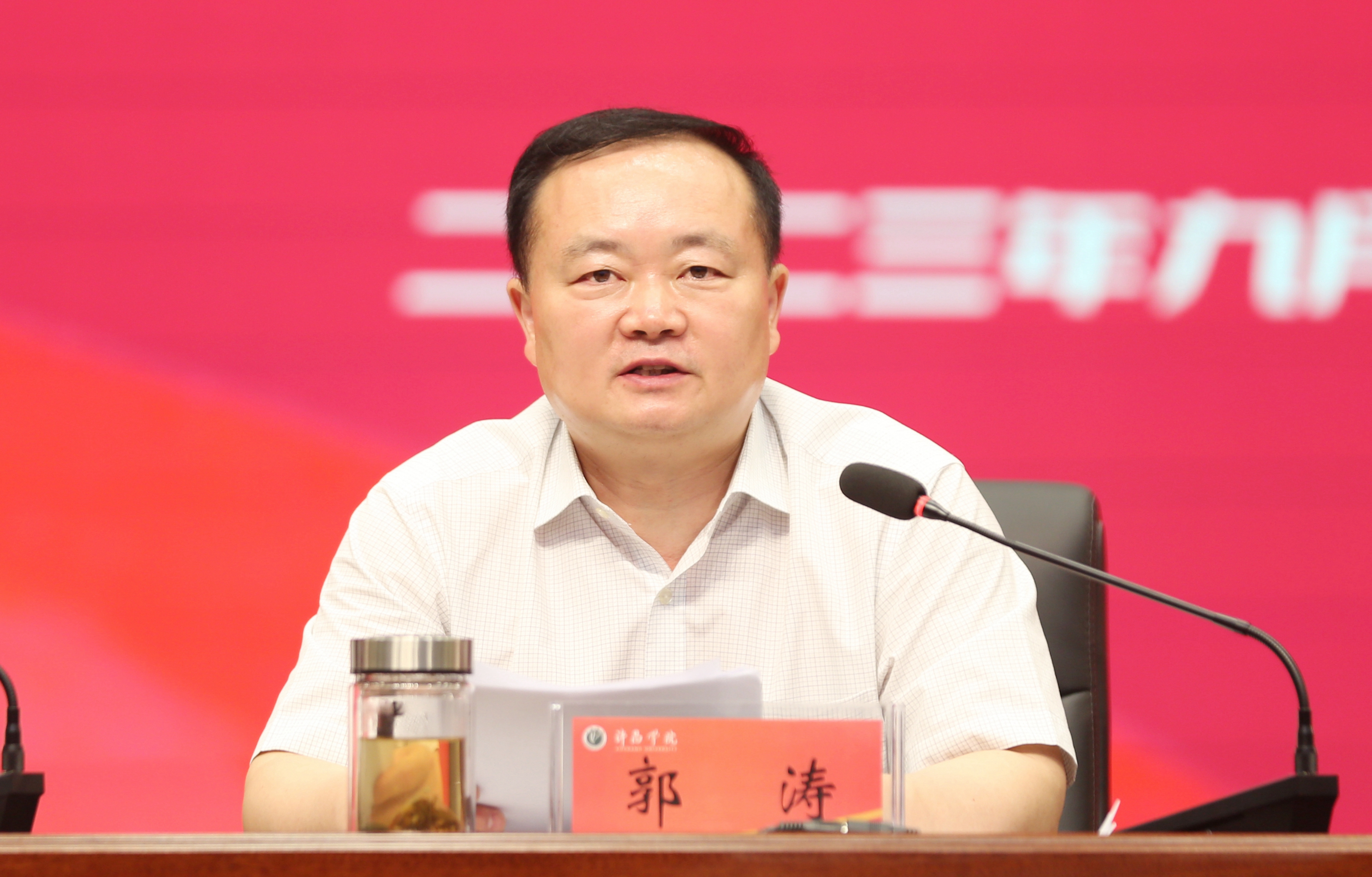 郭涛对广大教职工提出四点希望和要求。一要做担当使命的传道之师。要牢固树立“躬耕教坛,强国有我”的志向与抱负,心怀“国之大者”“省之要者”,积极融入教育强国、教育强省建设的实践中,勇担培育时代新人的历史使命。二要做师德高尚的品行之师。要自觉加强师德修养,不断陶冶道德情操,坚持以德立身、以德立学、以德施教、以德育德,以高尚的人格魅力赢得学生敬仰,用模范行为影响带动学生,努力做塑造学生品格、品行、品味的“大先生”。三要做学识扎实的学问之师。要树立终身学习理念,不断更新思想观念和知识结构,提升教学能力和水平,积极开展科研创新和技术攻关,努力成为本领域、本单位、本部门的“行家里手”。四要做春风化雨的仁爱之师。要把教书和育人有机融合起来,多关心关爱学生、尊重信任学生、包容理解学生,通过真情、真心、真诚拉近同学生的距离,滋润学生的心田,努力成为学生最信赖的良师益友。