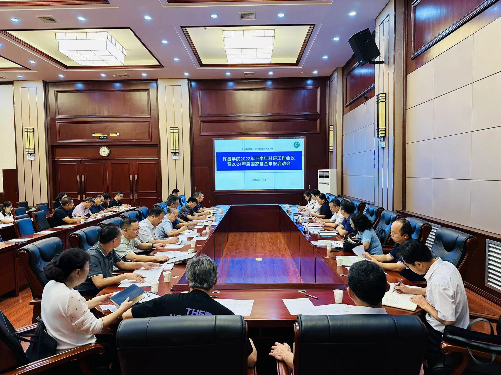 9月20日下午,我校在学生中心一楼学术报告厅召开2023年下半年科研工作会议暨2024年度国家基金申报启动会。副校长杜根远出席会议,相关职能部门负责人,各二级学院院长、科研副院长参加会议。会议由科研处处长赵艳敏主持。