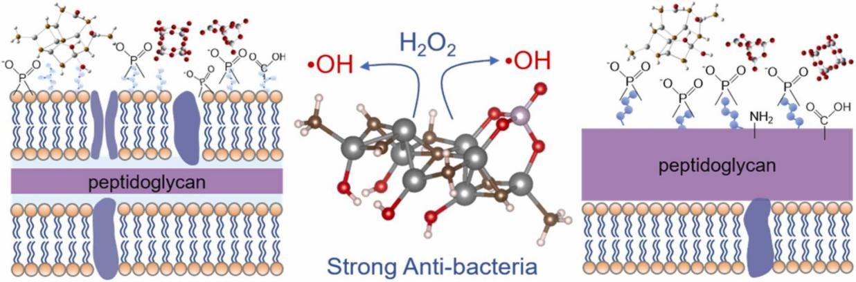 众所周知,抗生素是治疗感染性疾病的主流药物,但抗生素的长期使用,尤其是不当使用,将导致抗菌药物耐药(AMR),这是人类面临的十大全球公共卫生威胁之一。为减少抗生素的使用,新的抗菌材料的寻找被迫切需要。研究表明,纳米材料具有独特的性质和多种抗菌机制,特别是,具有过氧化物酶样活性的纳米材料(又称纳米酶)可诱发大量ROS,显示出高效抗菌活性和更低的副作用,为解决耐药细菌的危害提供了新策略,然而,许多纳米材料虽能在非细胞条件下产生高浓度ROS,但抗菌活性仍不理想。主要原因可能在于,时刻动态的纳米材料与细菌相互作用较弱,使得寿命很短的•OH无法有效地攻击细菌。