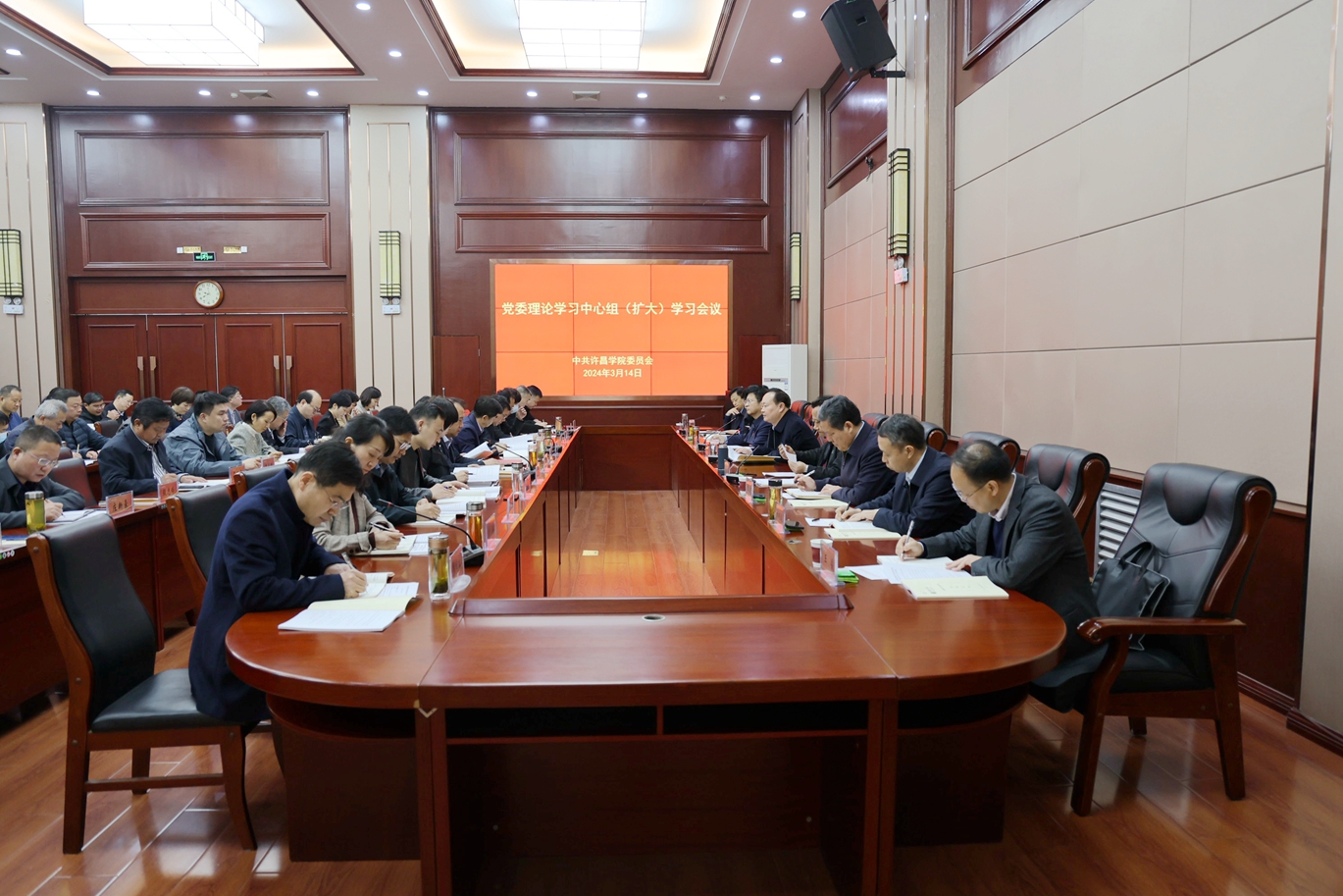 3月14日上午,我校在学术会议大厅召开党委理论学习中心组(扩大)学习会议。校党委书记郭涛,党委副书记孙海,党委副书记、工会主席梁予昉,副校长高金星、潘春彩、杜根远,纪委书记申占伟,副校长王俊出席会议,全体中层正职领导干部参加会议。郭涛主持会议并讲话。