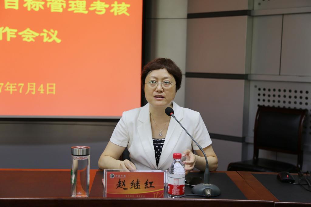 会上,院长赵继红对目标管理考核工作进行了安排部署,并对工作程序和工作纪律进行了要求。她指出,这是我校首次开展全面系统的目标管理考核,也是今后目标管理考核工作常态化的开端,意义重大。年度目标管理考核是一项关乎全校所有单位切身利益的严肃工作,是对各单位全年工作成绩的评定和肯定。因此,全校各单位应高度重视,认真对待。并要求参与目标考核工作的相关部门,要熟悉所有的指标体系,精益求精;各单位之间应保持沟通协调、信息畅通,以确保圆满完成工作任务。并希望大家抱着临事以惧的态度,认真做好各项工作,做到慎初慎微,善始善终,圆满完成本次目标管理考核工作,共同为我校管理机制的创新,交出一份令人满意的答卷。