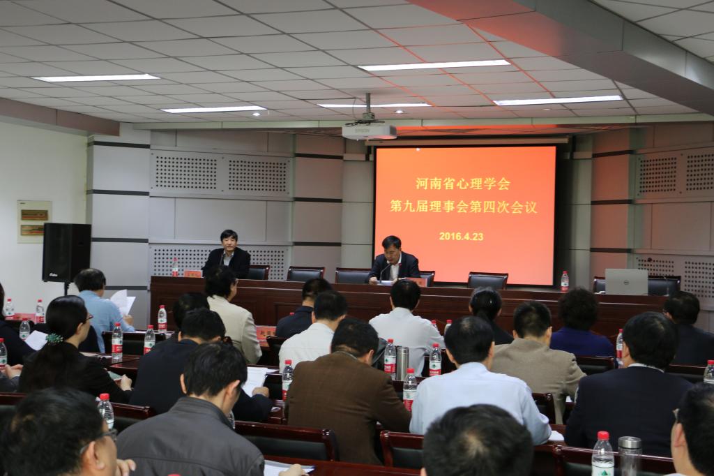 423日上午,河南省心理学会第九届理事会第四次会议在我校办公楼第三会议室举行,来自全省各地的50多位理事参加了会议。河南省心理学会理事长、河南大学常务副校长赵国祥,河南省心理学会秘书长李永鑫出席会议。