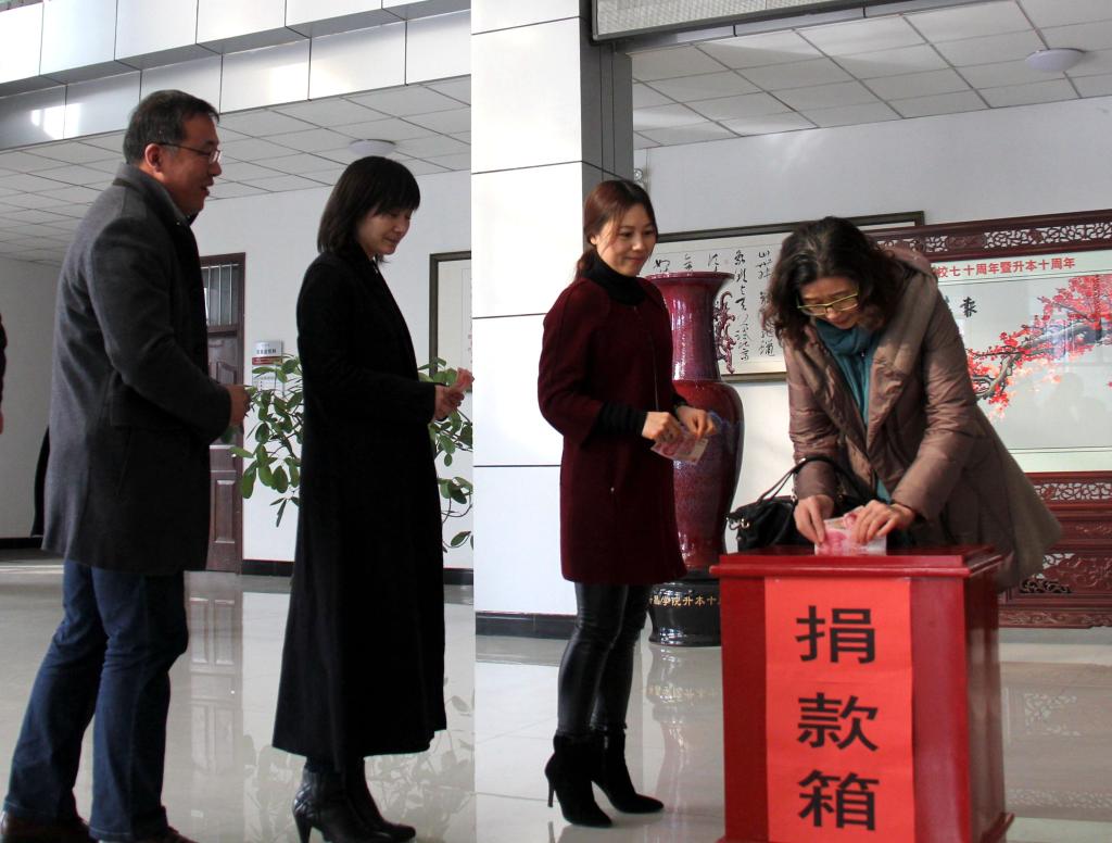 在校领导的带领下,大家依次把爱心善款放进捐款箱内。