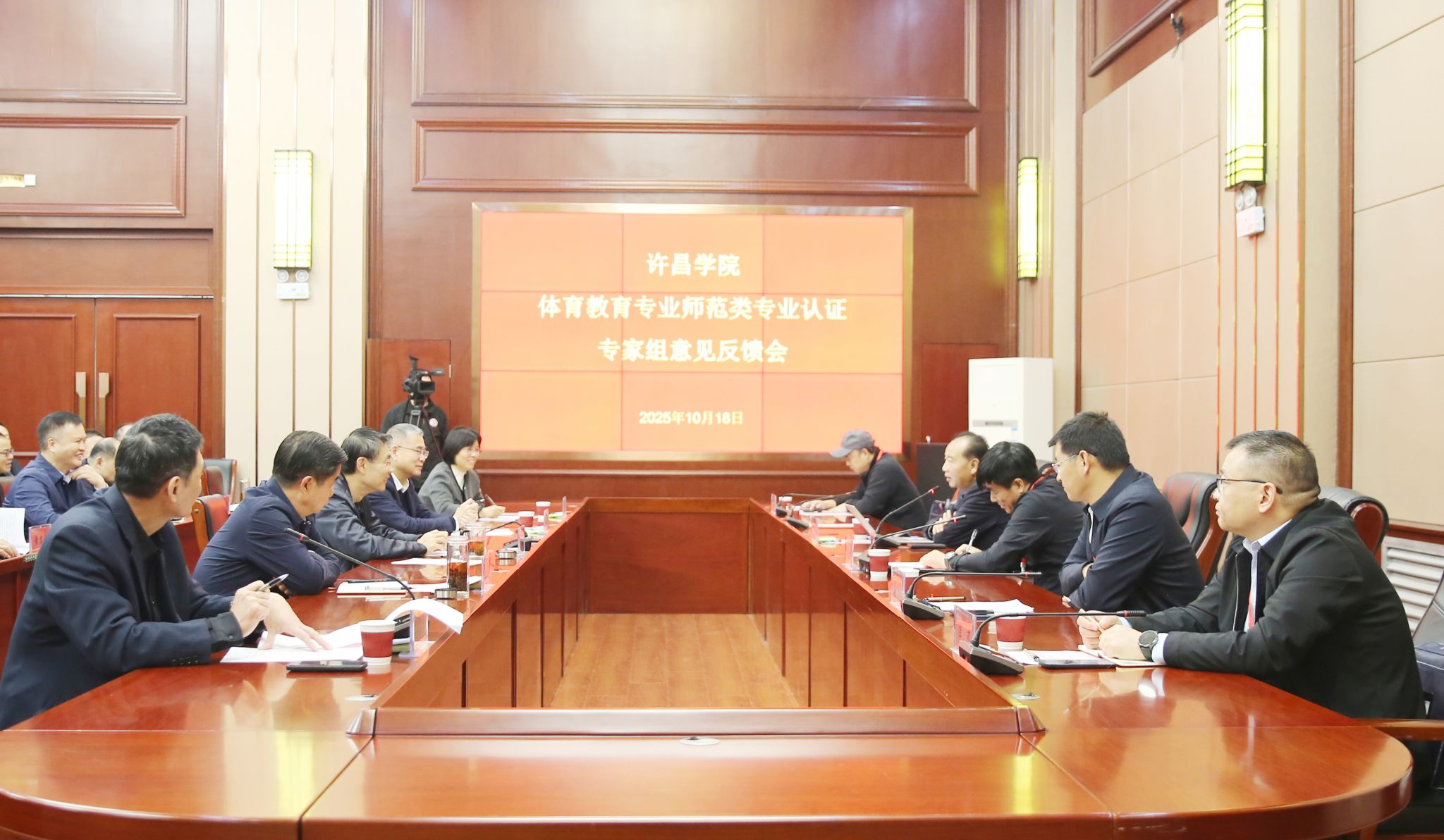 10月18日上午,教育部师范类专业认证专家组在我校学术会议中心召开体育教育专业进校考查意见反馈会。专家组组长罗林教授,河南省教育评估中心副主任张新民教授,专家组成员岳新坡教授、王琦正高级教师,秘书李可副教授,我校校长郑直,副校长牛海鹏、冯晓民出席会议。反馈会由罗林主持。