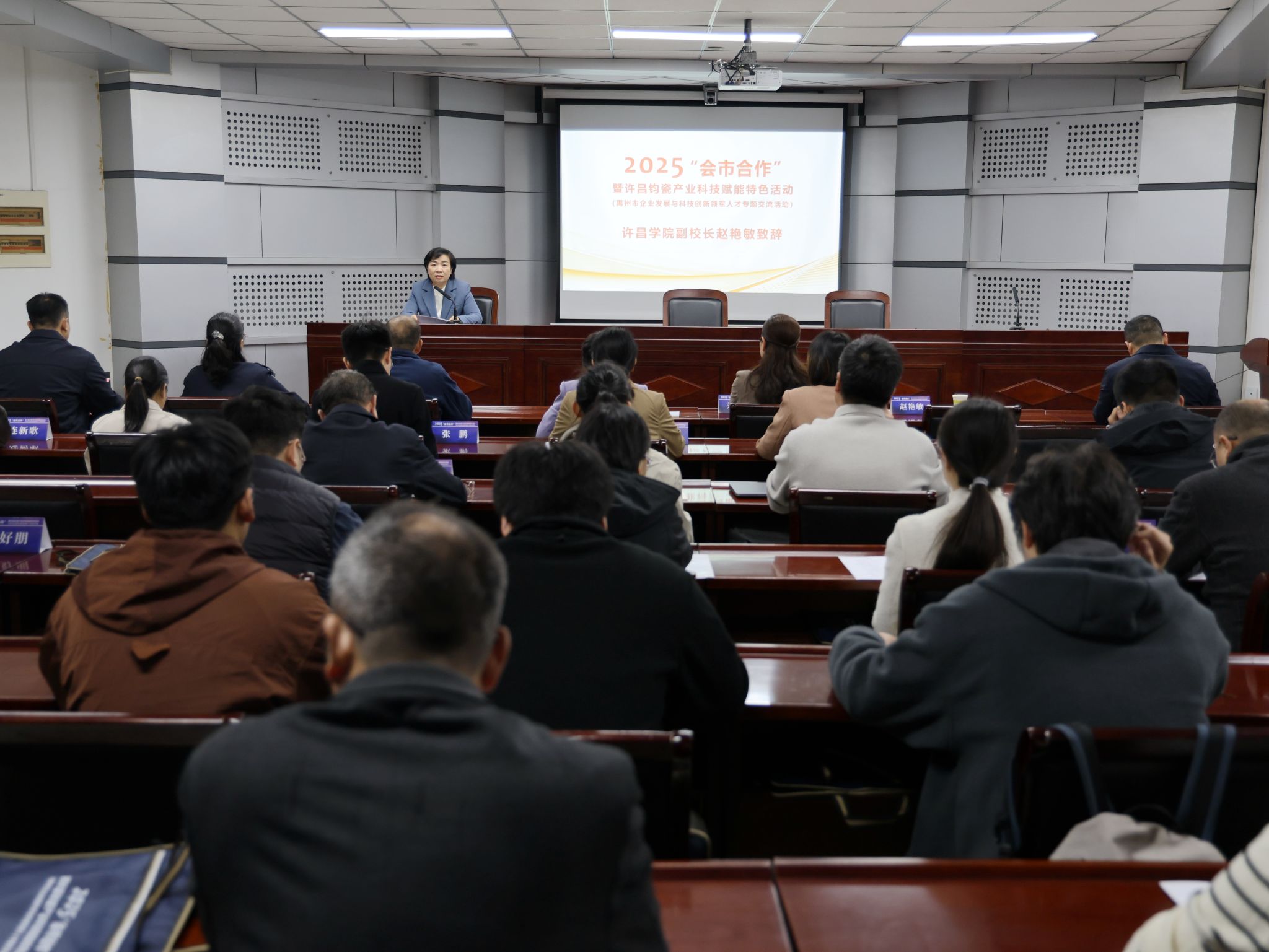 赵艳敏在致辞中表示,许昌学院将持续发挥人才与创新优势,与各方建立长期稳定的合作关系,共同探索“校企政行”协同创新的新模式、新路径,为许昌经济社会高质量发展贡献更多“许院智慧”与“许院力量”。