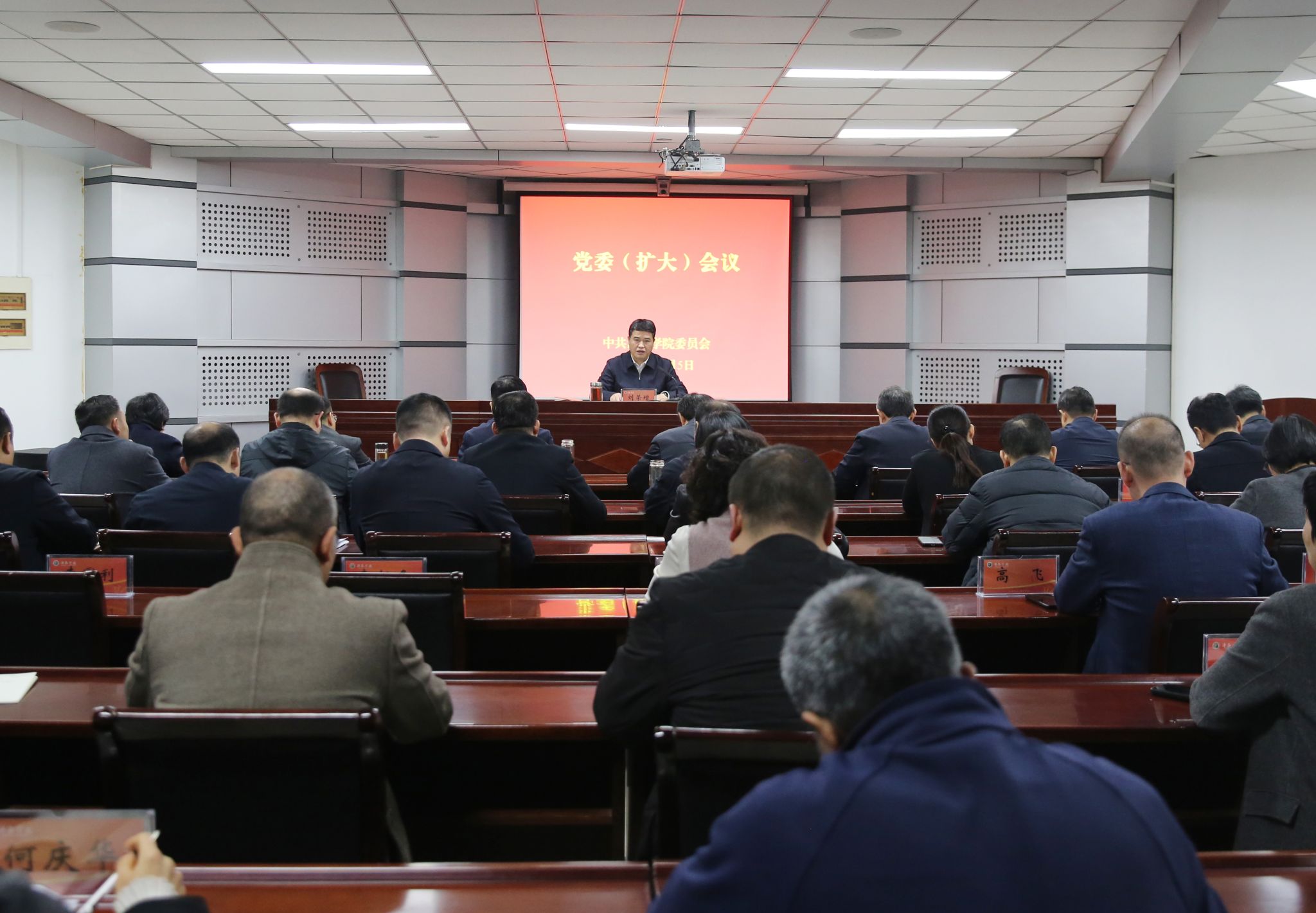 11月5日上午,我校在办公楼第三会议室召开党委(扩大)会议,专题学习党的二十届四中全会精神,并就学校贯彻落实工作作出部署和安排。党委书记刘荣增主持会议并讲专题党课。全体在校校领导及中层正职参加会议。