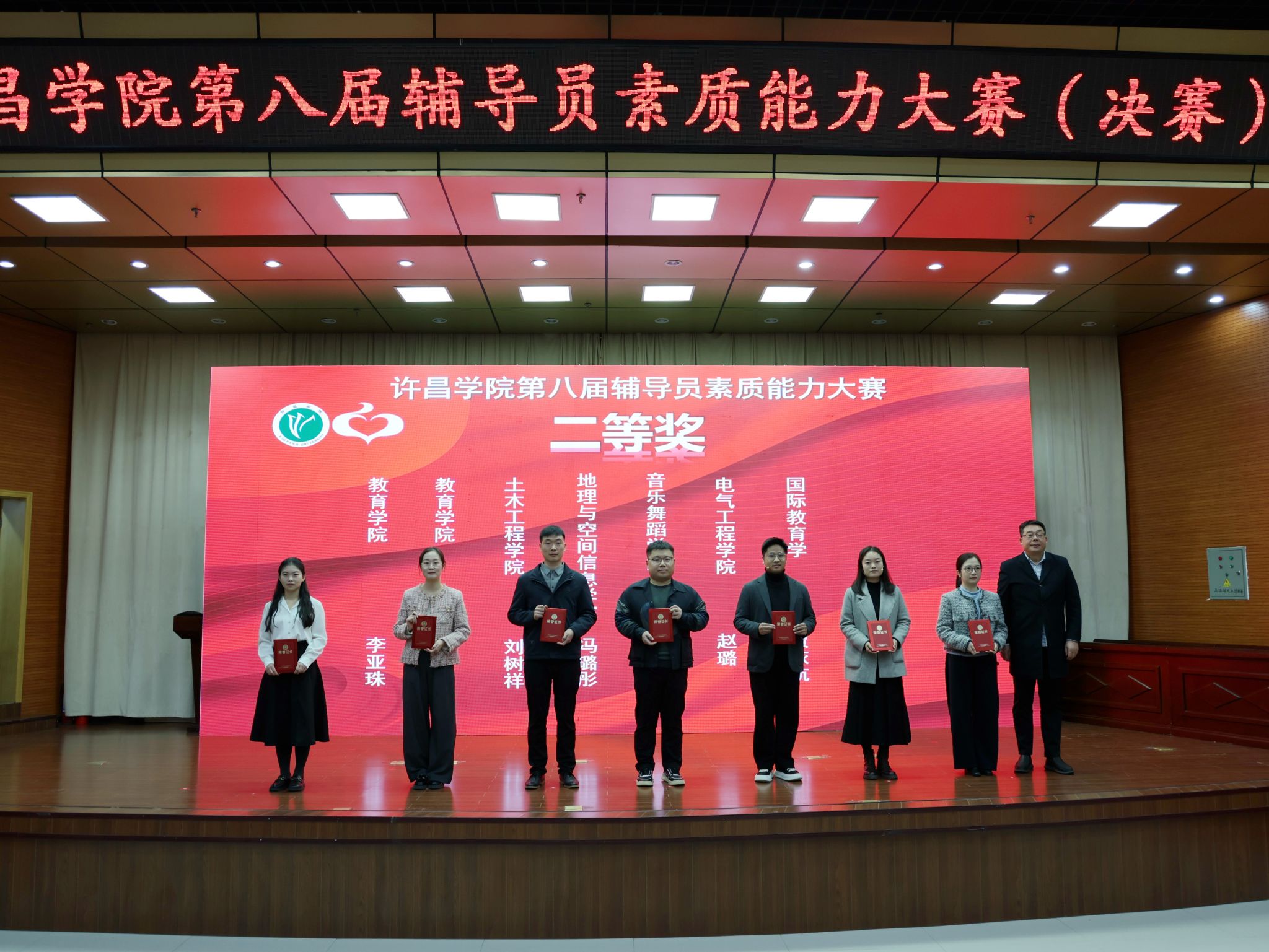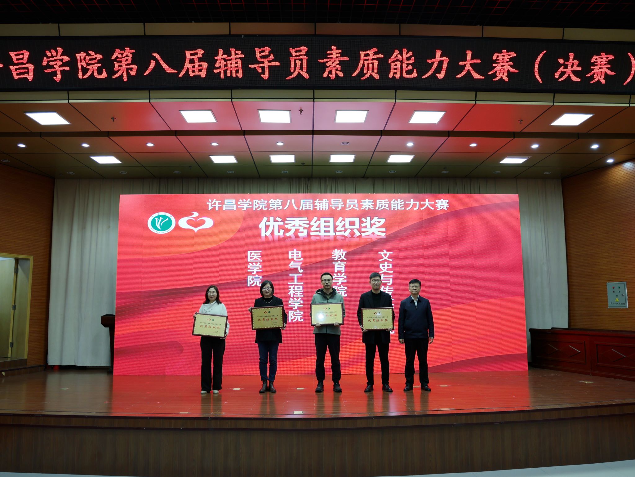 11月7日下午,我校第八届辅导员素质能力大赛决赛在学术报告厅圆满落下帷幕。校党委副书记、工会主席梁予昉出席活动并为获奖单位颁奖,党委宣传部、党委统战部、学生工作部(处)等部门负责人观摩比赛,学校相关部门负责人担任本次大赛评委,各学院(社区)党委副书记、全体辅导员及学生代表全程观摩了本场比赛。