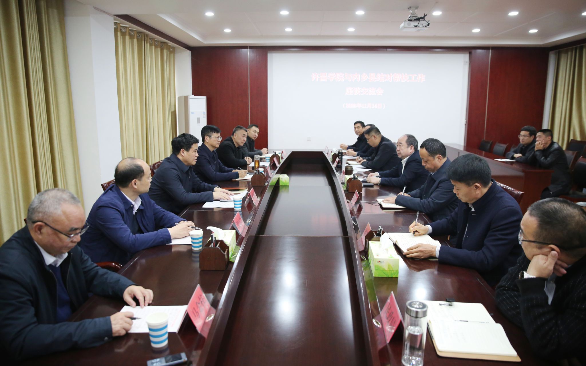 11月14日,校党委书记刘荣增,党委副书记、工会主席梁予昉一行赴南阳内乡县,就高质量推进校地结对帮扶工作开展专题调研。内乡县委书记张智广,县委常委、县委办公室主任郭惠轩,县委常委、副县长王延陪同调研并出席座谈会。座谈会由王延主持。