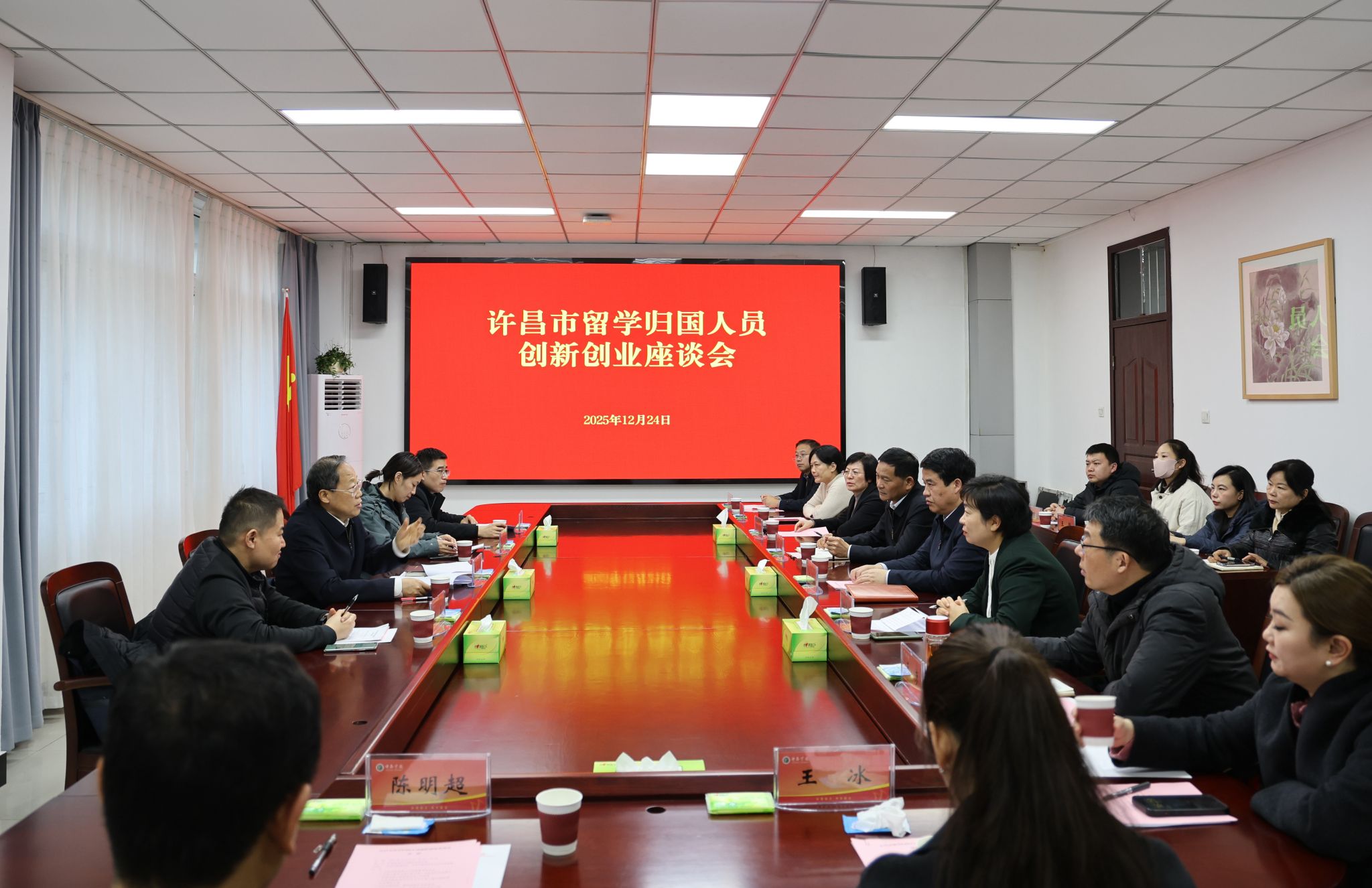 河南欧美同学会秘书处、许昌市委统战部、民进许昌市委会、许昌市欧美同学会,许昌学院党委统战部、校欧美同学会骨干成员代表参加座谈会。(摄影:杨哲)