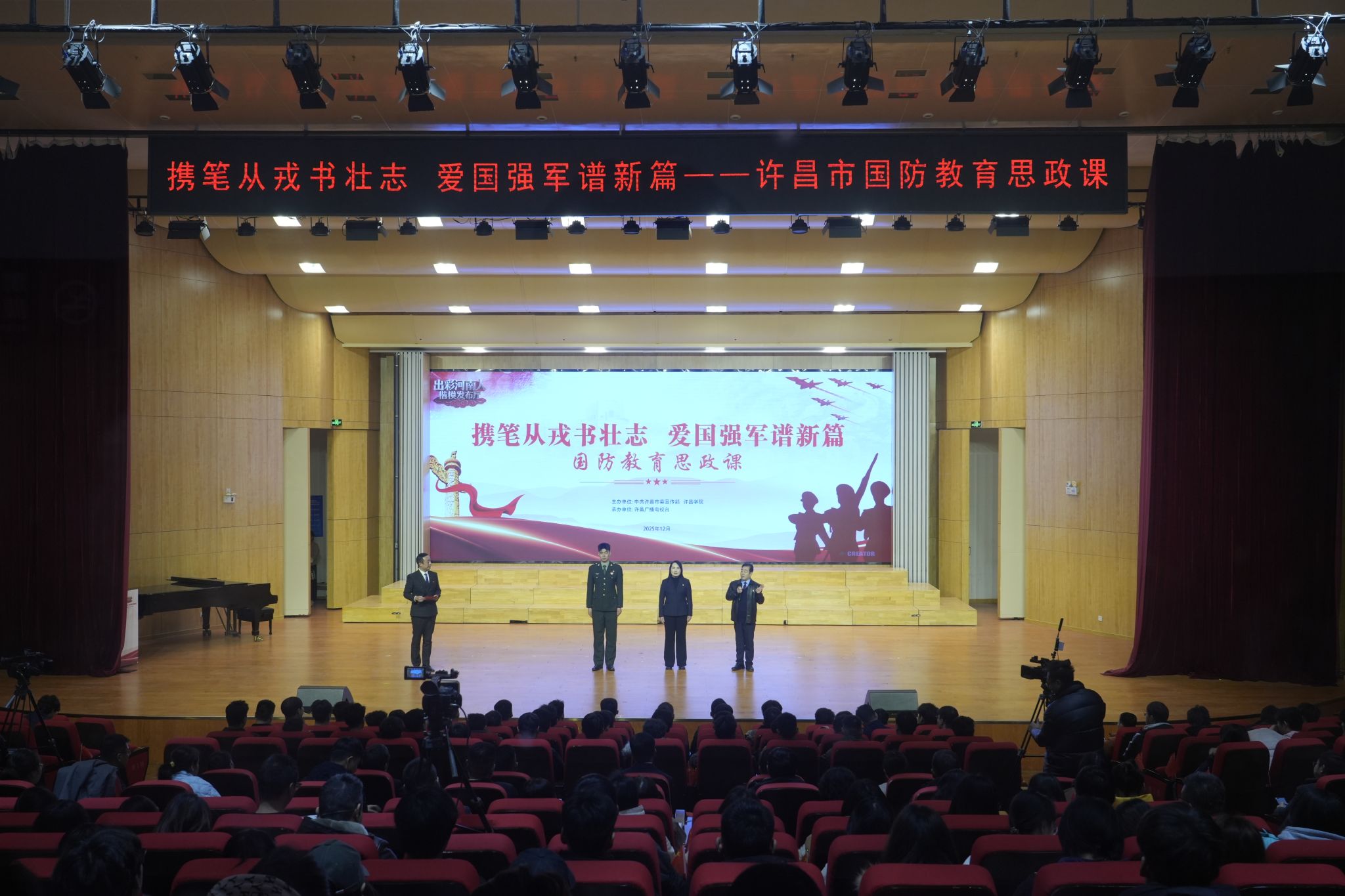 此次活动由许昌市委宣传部主办和中共许昌学院委员会主办,许昌广播电视台承办。活动以“有温度”的宣讲模式,让红色基因、国防意识在青年学子心中生根发芽,推动思政课真正“火起来”“活起来”,为培养担当民族复兴大任的时代新人注入强劲动力。(图片由人民武装部提供)