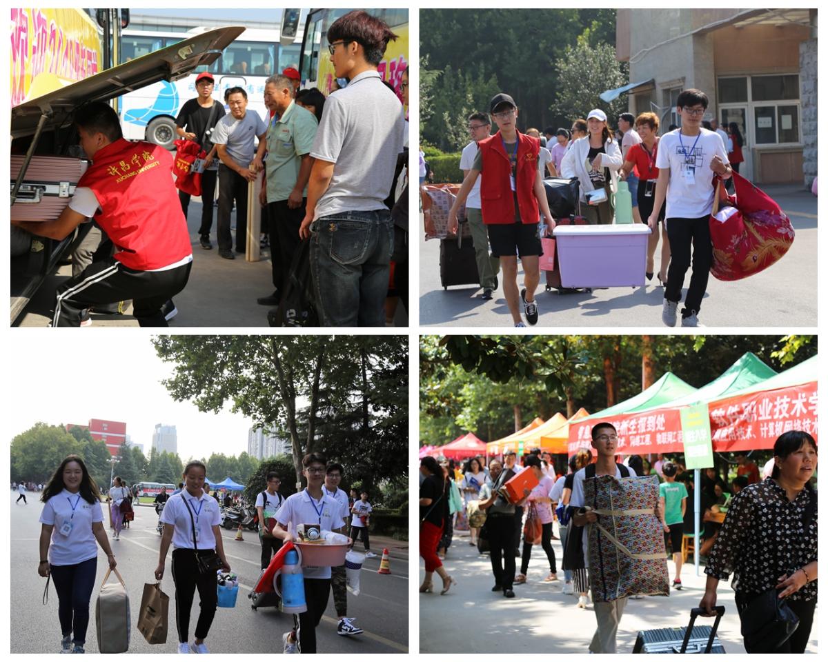 校学生会、青年志愿者协会等团学组织400多名学生志愿者参与到迎新工作中。校内多个地方都设有服务站点,校外的高铁站、火车站、汽车站也都有穿着红马甲的志愿者有条不紊负责接待。