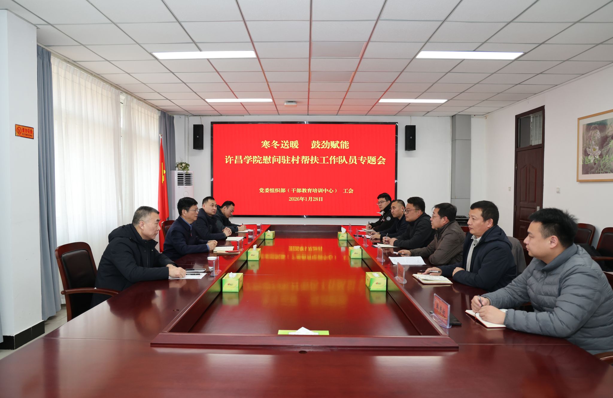 1月28日上午,我校在办公楼第四会议室召开慰问驻村帮扶工作队员专题会,向扎根乡村振兴一线的同志致以诚挚慰问和新春祝福。校党委副书记、工会主席梁予昉主持会议并讲话。