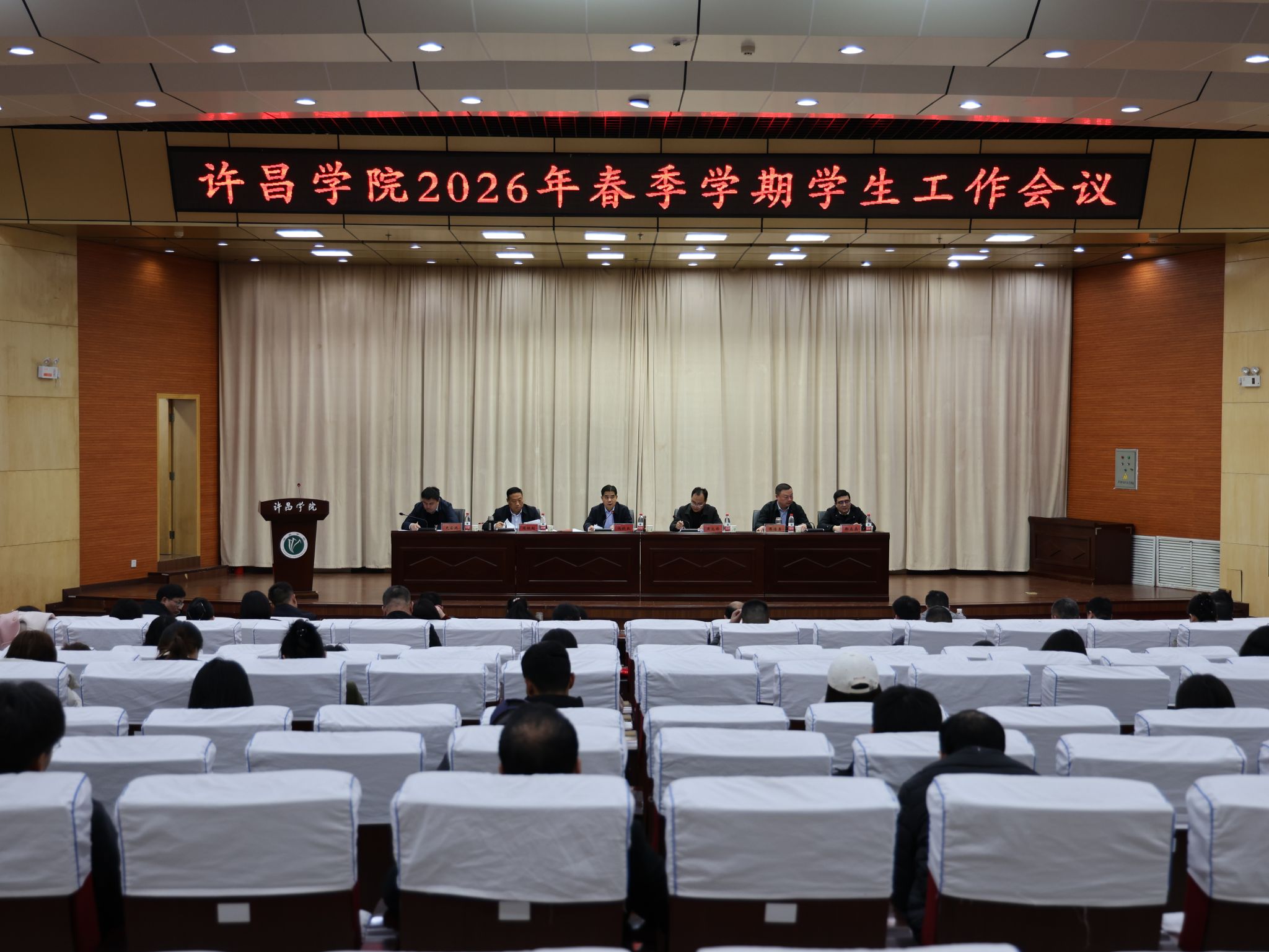 3月19日下午,我校在图书馆二楼学术报告厅召开2026年春季学期学生工作会议。副校长冯晓民出席会议并讲话。相关职能部门主要负责人、各学院(社区)党委副书记、全体专兼职辅导员共140余人参加会议。