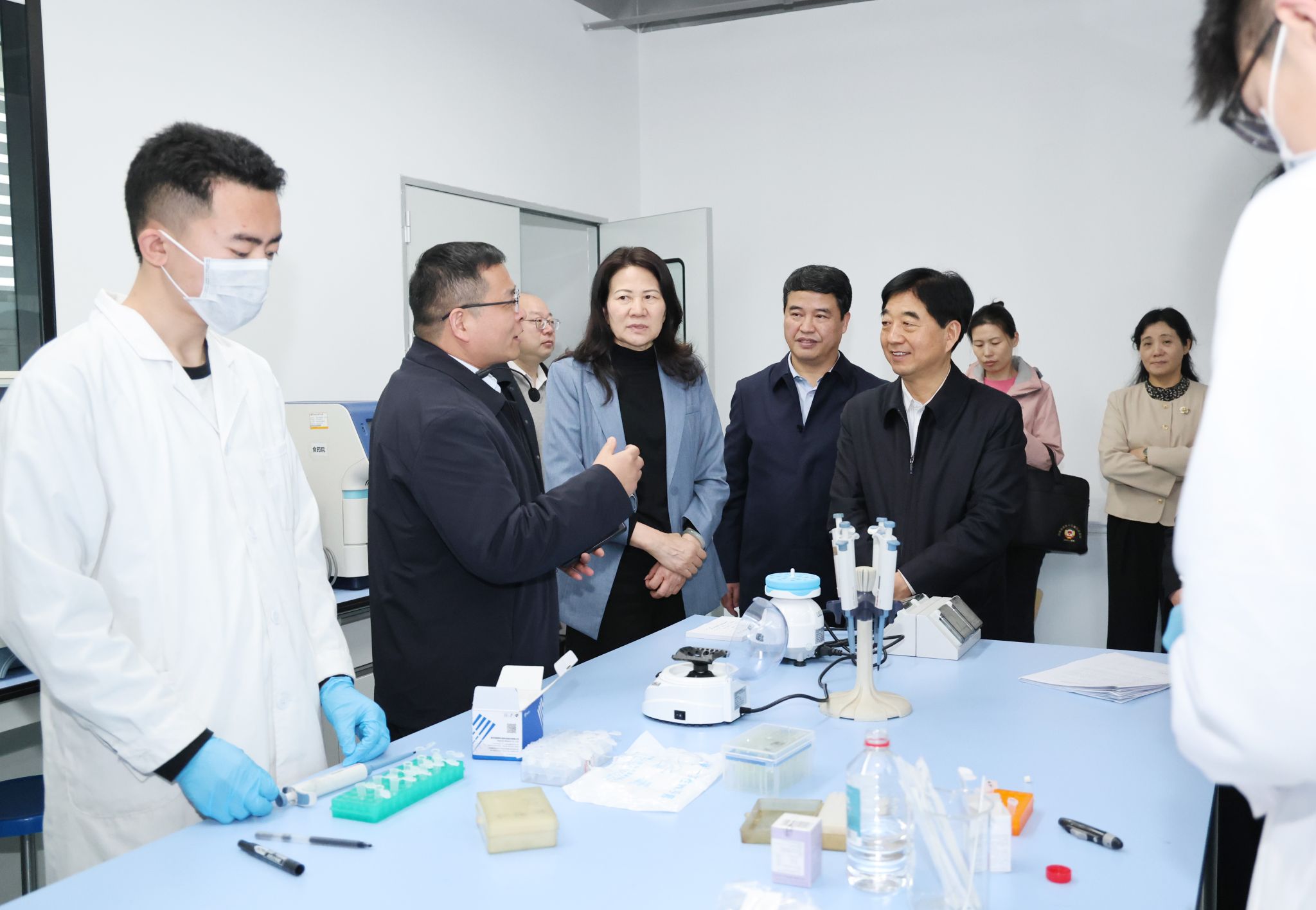霍金花一行先后来到我校河南省微纳米能量储存与转换材料重点实验室、河南省食品安全生物标识快检技术重点实验室等地,详细了解我校在科技创新、成果转化、人才队伍建设以及服务地方经济社会发展等方面的情况。